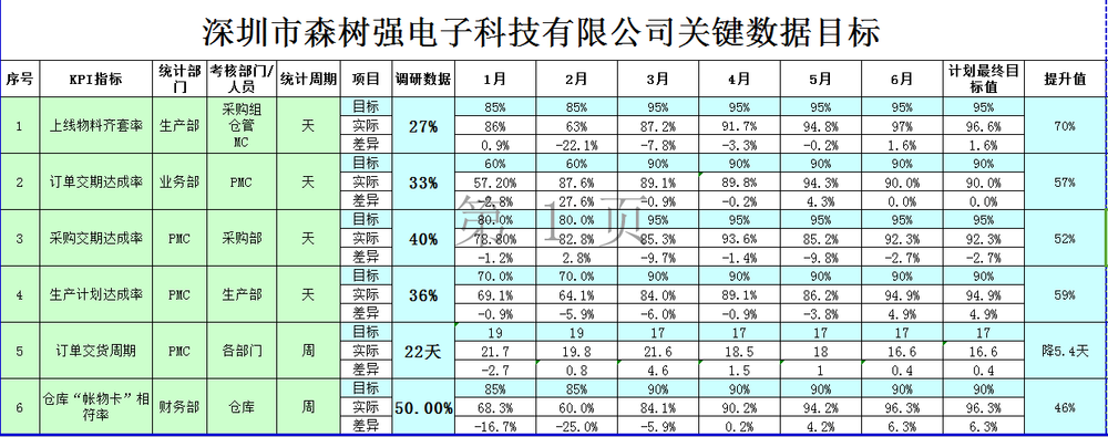 6.制定采購物料齊套率攻關(guān)方案并推動落地,提高物料齊套率。