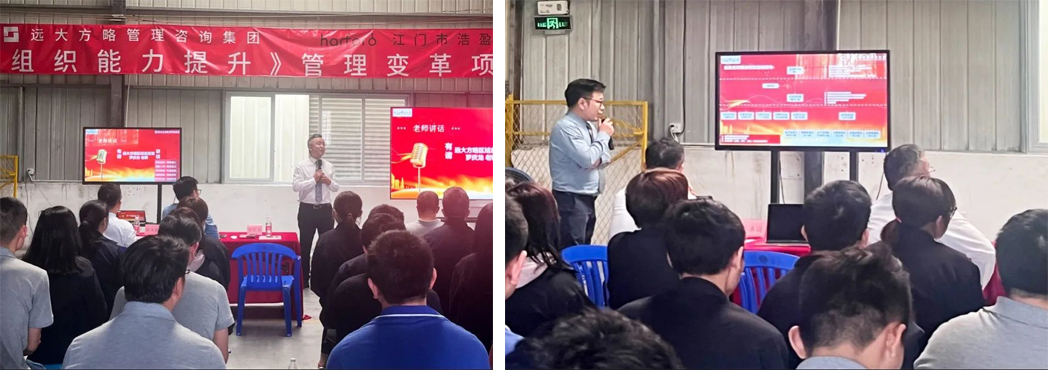 項(xiàng)目老師表示,在此次變革中,遠(yuǎn)大方略與浩盈是屬于戰(zhàn)友關(guān)系,變革成功既需要公司高層的大力支持,也需要公司團(tuán)隊(duì)的高效執(zhí)行,再加上老師的專(zhuān)業(yè)支撐,相信此次變革一定能夠打勝仗,為浩盈持續(xù)健康發(fā)展助力。