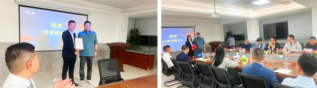會(huì)上,陳總為遠(yuǎn)大方略項(xiàng)目組頒發(fā)授權(quán)書,授予項(xiàng)目管理權(quán),同時(shí)為項(xiàng)目組老師頒發(fā)聘書,聘請(qǐng)老師為此次改善項(xiàng)目輔導(dǎo)老師,全力推進(jìn)此次項(xiàng)目開展。