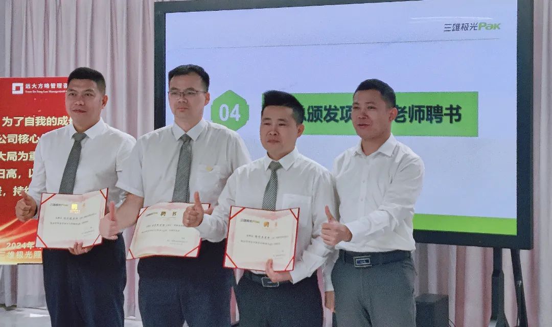 隨后,唐總為遠(yuǎn)大方略項目組老師頒發(fā)聘書,聘請項目組老師為此次項目改善的指導(dǎo)老師,全面推動此次項目開展。