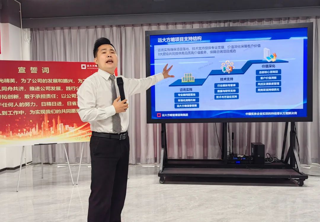 啟動會上,項目組老師首先向三雄極光對遠(yuǎn)大方略的信任與支持表示感謝,隨后老師分析了目前的市場環(huán)境,表示市場內(nèi)卷加速,想要在市場競爭中持續(xù)保持競爭優(yōu)勢,企業(yè)需要練內(nèi)功,全面開啟降本增效,推動企業(yè)高質(zhì)量發(fā)展。