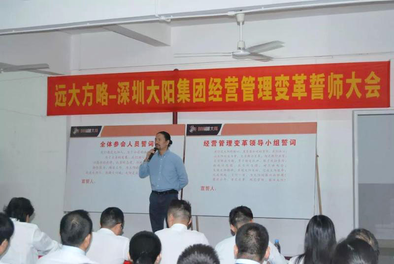 “誓師大會的召開標(biāo)志著大陽集團調(diào)研工作的結(jié)束和大陽集團經(jīng)營管理變革工作的開始,企業(yè)管理變革只有開始沒有結(jié)束;企業(yè)管理變革會有一個痛苦的過程,不經(jīng)歷風(fēng)雨怎么見彩虹,但痛苦之后一定會收獲喜悅;變革中我們需要相互精誠合作、統(tǒng)一方向、為完成變革使命全力以赴。”