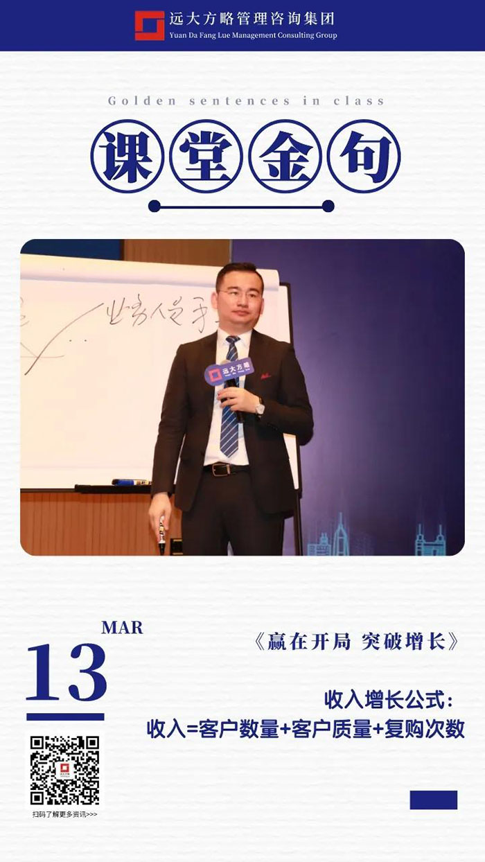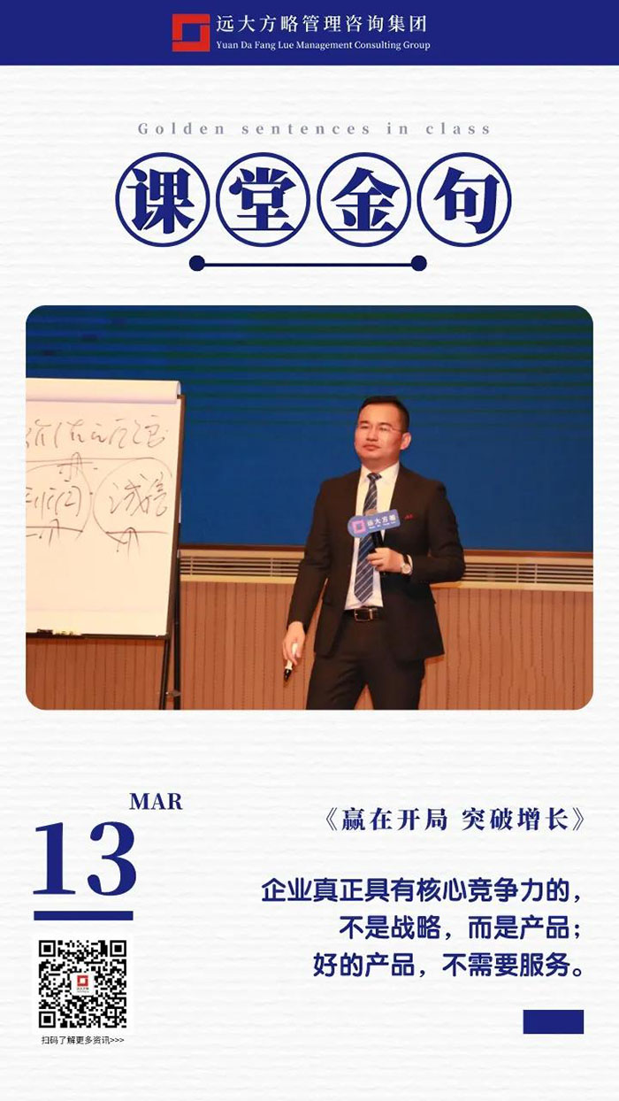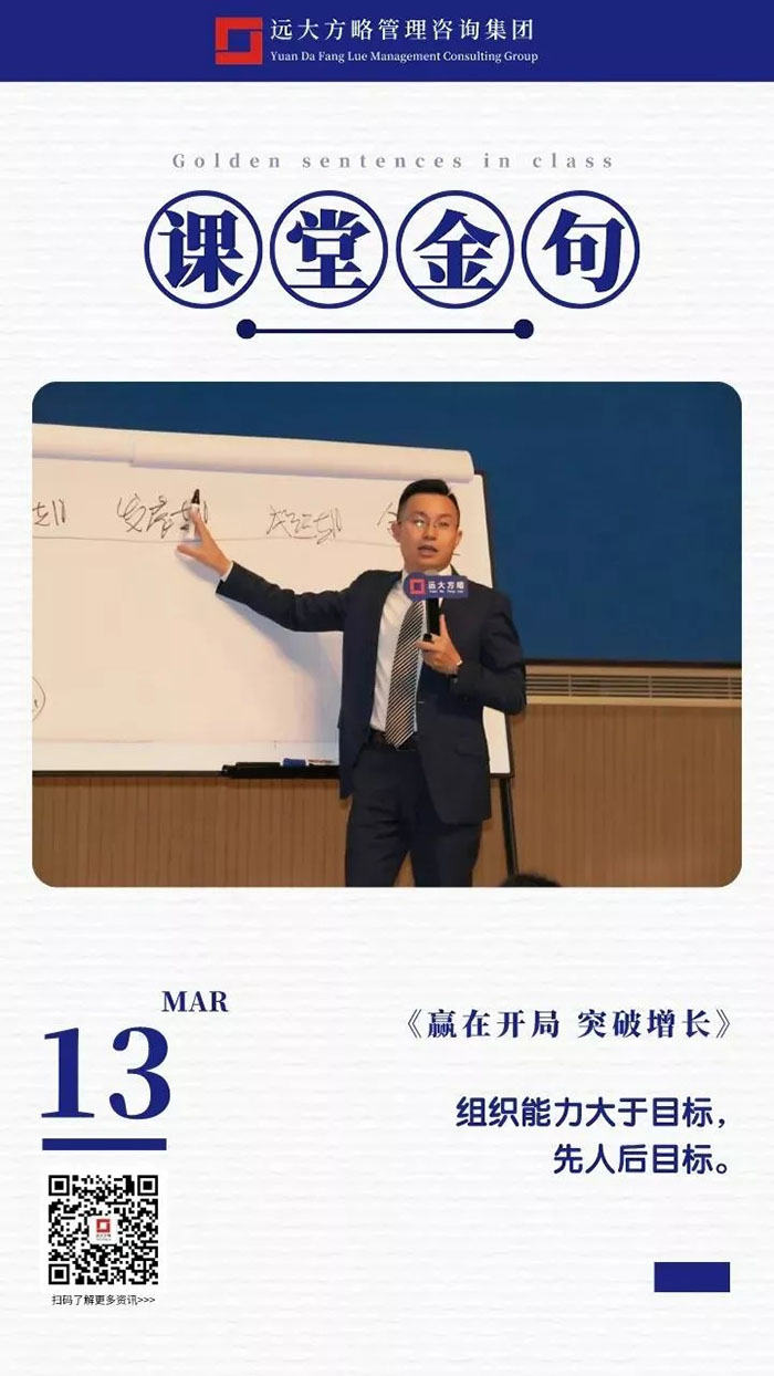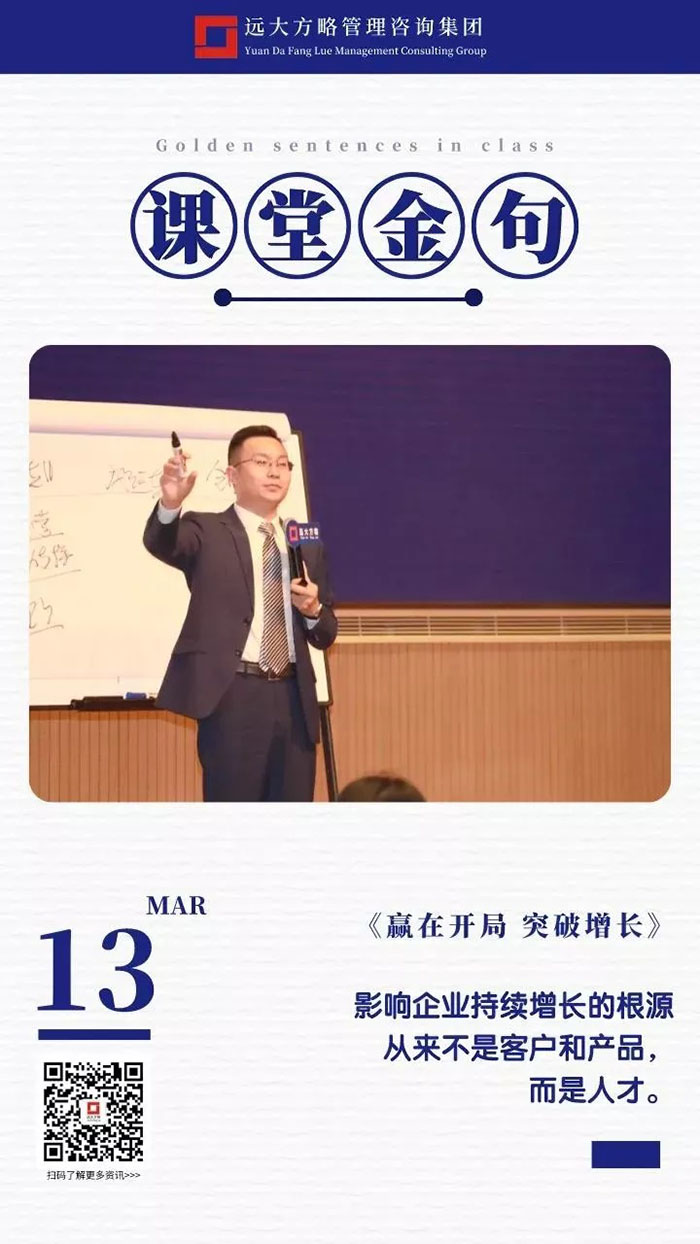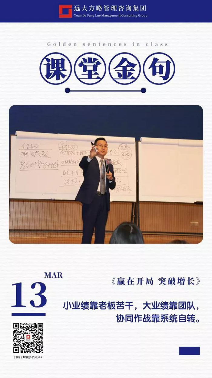 課上老師采用“道、法、術(shù)、器”相結(jié)合的形式給學(xué)員們帶來了一場精彩的知識盛宴。3月13日的課堂上兩位老師也總結(jié)了很多金句,可以很好的運用到企業(yè)的經(jīng)營管理中。為了幫助大家更好的吸收和鞏固兩天的學(xué)習(xí),小編整理了今天課程雷老師的部分金句分享給大家,希望能給大家?guī)砀鄦l(fā)。