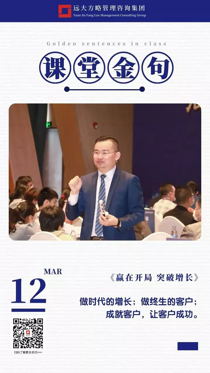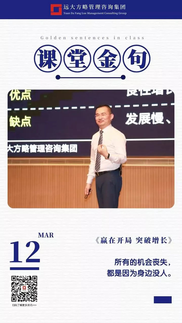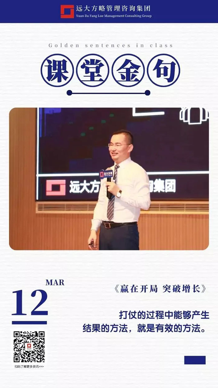 課堂上雷老師講課循序漸進,通過問題的形式逐步引發(fā)學員的思考,讓每位學員都能有所感有所悟,回到企業(yè)之后能夠落到實處,做到真正的幫企業(yè)解決問題,這也正是遠大方略的定位,成為中國實體企業(yè)實效的持續(xù)增長方案解決商,遠大方略也一直秉承初心努力踐行!