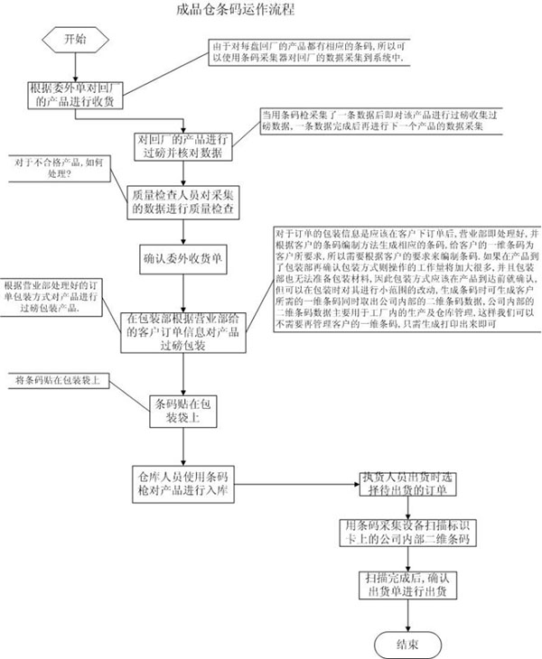 1) 當(dāng)委外收貨的半成品送至包裝部后,包裝部根據(jù)營業(yè)部的出貨計劃,按訂單包裝方式(內(nèi)包裝含商品數(shù))對產(chǎn)品進行過磅包裝。