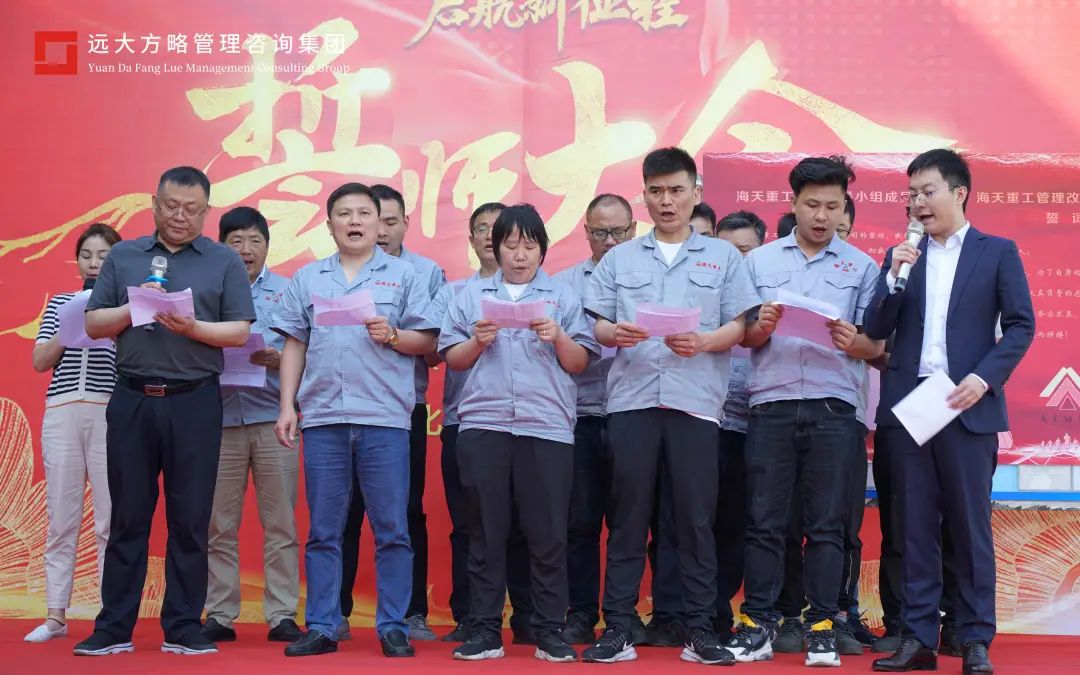 任正非說,產(chǎn)品發(fā)展的路標(biāo)是客戶需求導(dǎo)向,企業(yè)管理的目標(biāo)是流程型組織建設(shè)。此次變革就是增強(qiáng)組織能力,提高企業(yè)的管理水平和競爭力,支撐公司戰(zhàn)略目標(biāo)的實(shí)現(xiàn)。針對變革,老師有方法和工具,但是需要大家一起攜手將方案有效落地,推動此次變革的順利進(jìn)行。會上遠(yuǎn)大方略項(xiàng)目組老師也上臺進(jìn)行了宣誓,必將全力以赴做好此次海天重工的項(xiàng)目改善,助力企業(yè)更成功。