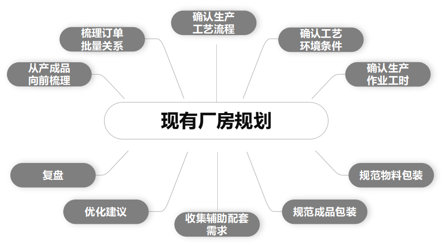 總體規(guī)劃產(chǎn)能-工廠規(guī)劃總綱,做什么產(chǎn)品,做多大量,決定著規(guī)劃規(guī)模,是我們?cè)诠S規(guī)劃項(xiàng)目考慮因素,并充分結(jié)合如下步驟展開(kāi)規(guī)劃: