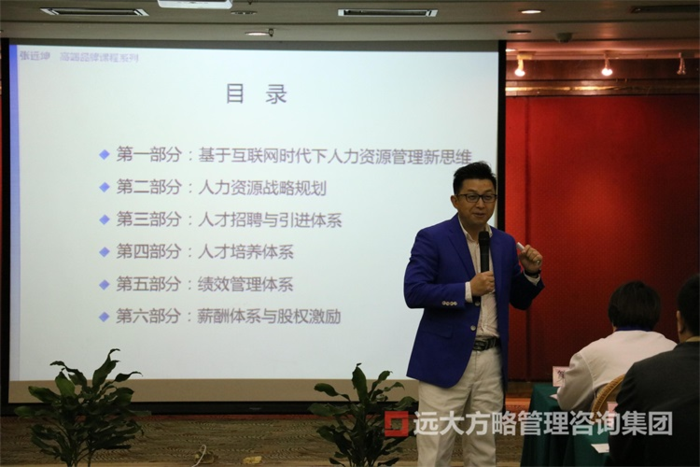 此次課程,我們很榮幸地邀請到了我們遠大方略人力資源模塊的合伙人張遠坤老師,張老師是智慧組織力、雙因子模式倡導(dǎo)者、人力資源管理實戰(zhàn)培訓顧問,其幽默的講課風格一度讓在座的“同學們”拍手稱絕。主持人由我們遠大方略的咨詢師劉建斌老師擔任。