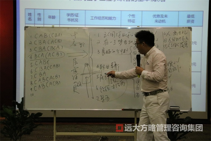 當制定了戰(zhàn)略規(guī)劃以后,張老師跟我們探討了如何招聘人才以及引進的體系,指出我們要招既有意愿也有能力的人走進我們的企業(yè),選擇什么樣的人才很重要,應(yīng)該考慮哪些因素?如是否具有良好的職業(yè)素養(yǎng)、學習能力如何、個人能力又如何、有何經(jīng)驗等等。人崗匹配、人和組織匹配、人和組織發(fā)展匹配,對于企業(yè)來說哪一個更重要?重要性順序不同,面試中考察的重點也不同。企業(yè)應(yīng)根據(jù)自身需求,考察人才的核心競爭力。