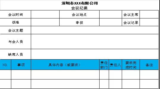 ▲附示例圖:企業(yè)常用的會(huì)議紀(jì)要格式模版