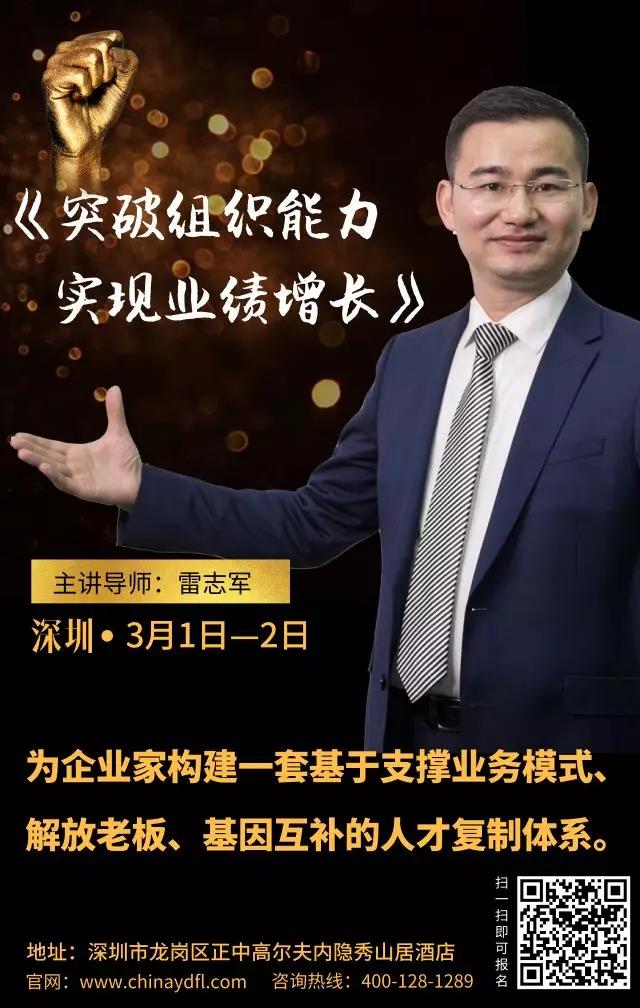 如果您認(rèn)可“先人后事”的理念,或者想進(jìn)一步了解企業(yè)核心圈構(gòu)建、人才營盤打造、人才生產(chǎn)線建立等相關(guān)內(nèi)容,歡迎參加遠(yuǎn)大方略聯(lián)合創(chuàng)始人雷志軍導(dǎo)師3月1日、2日在深圳的《突破組織能力,實(shí)現(xiàn)業(yè)績增長》的組織突破專題課,我們一起探討,相互交流,期待您的光臨。