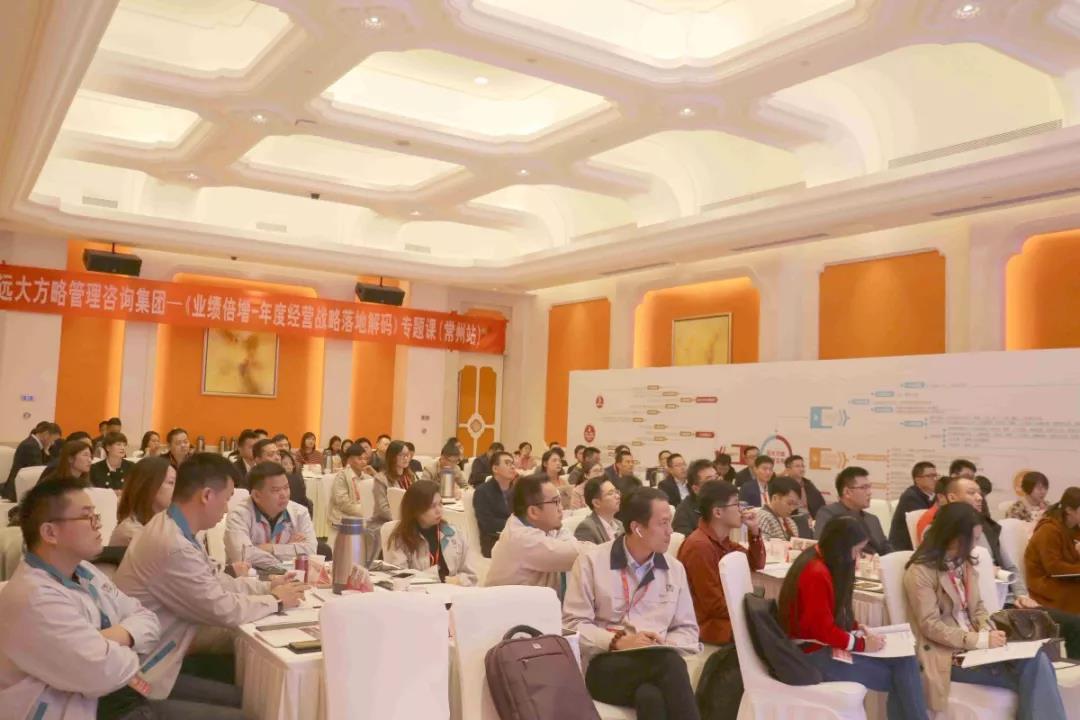 2019年11月15日—16日,遠大方略《業(yè)績倍增---年度經(jīng)營戰(zhàn)略落地解碼》全國巡講課第二站,在常州白金漢爵大酒店開講?,F(xiàn)場齊聚長三角100+位企業(yè)董事長、總經(jīng)理、各事業(yè)部副總等參與本次課程學習探討。