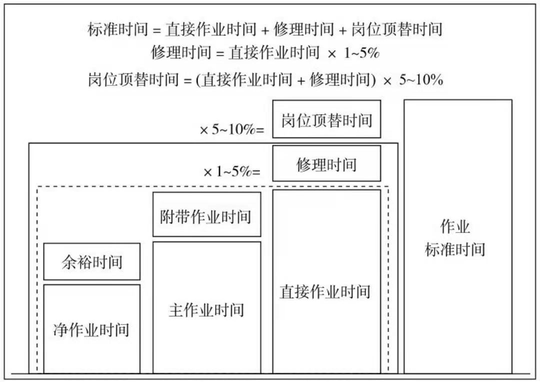 關(guān)于作業(yè)標(biāo)準(zhǔn)時間構(gòu)成直觀的表示方法如圖所示: