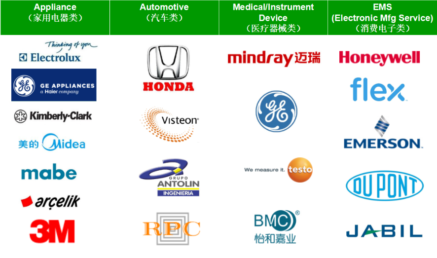 公司產(chǎn)品和服務(wù)廣泛應(yīng)用于醫(yī)療、家電、新能源、消費(fèi)電子、交通工具、精密傳動(dòng)等領(lǐng)域,客戶遍布全球,包括:深圳邁瑞、北京怡和嘉業(yè),德國(guó)博世、奔馳、寶馬,美國(guó)伊萊克斯、霍尼韋爾,日本本田、松下等世界五百?gòu)?qiáng)企業(yè),并與產(chǎn)業(yè)鏈國(guó)際巨頭企業(yè)結(jié)成緊密型戰(zhàn)略合作伙伴。
