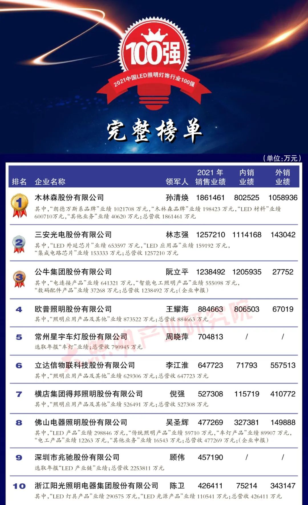 2021中國LED照明燈飾行業(yè)100強”完整榜單重磅來襲!