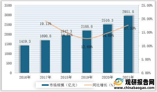 傳感器是一種檢測(cè)元件,能感受到被測(cè)量的信息,并能將感受到的信息,按一定規(guī)律變換成為電信號(hào)或其他所需形式的信息輸出,以滿足信息的傳輸、處理、存儲(chǔ)、顯示、記錄和控制等要求。根據(jù)數(shù)據(jù)顯示,2019年我國(guó)傳感器市場(chǎng)規(guī)模為2188.8億元,2020年我國(guó)傳感器市場(chǎng)規(guī)模為2510.3億元,同比增長(zhǎng)14.69%;預(yù)計(jì)2021年我國(guó)傳感器市場(chǎng)規(guī)??蛇_(dá)2951.8億元。