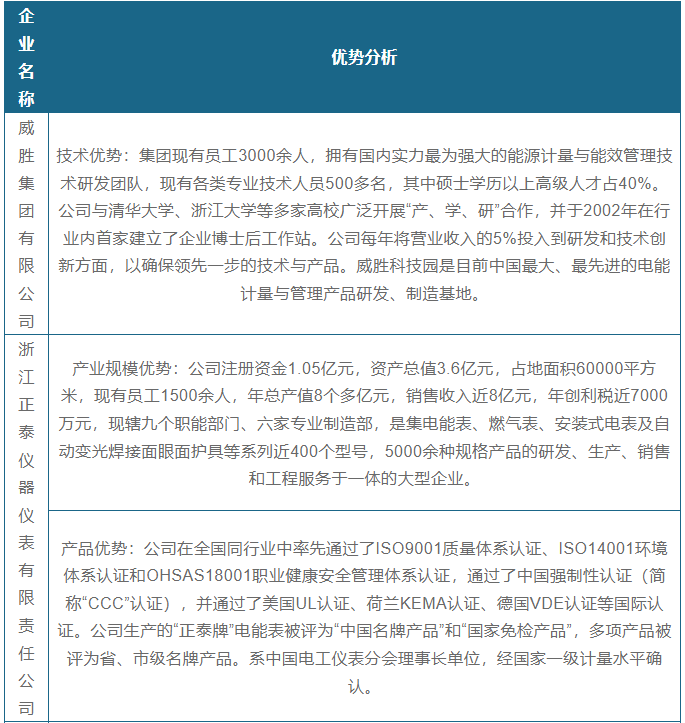 我國(guó)智能儀器儀表行業(yè)產(chǎn)業(yè)鏈中游代表企業(yè)優(yōu)勢(shì)分析