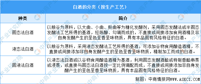 白酒按生產(chǎn)工藝可劃分為三類(lèi),分別是固態(tài)法白酒、液態(tài)法白酒和固液法白酒。