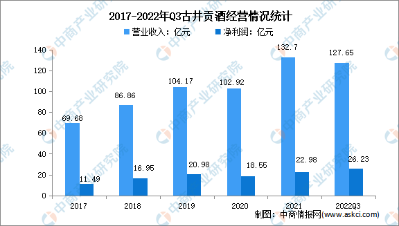 古井貢酒是中國(guó)老八大名酒企業(yè),是中國(guó)第一家同時(shí)發(fā)行A、B兩支股票的白酒類(lèi)上市公司,坐落在世界十大烈酒產(chǎn)區(qū)之一的安徽省亳州市。2021年,古井貢酒營(yíng)業(yè)收入達(dá)132.7億元,實(shí)現(xiàn)凈利潤(rùn)22.98億元。2022年前三季度實(shí)現(xiàn)營(yíng)業(yè)收入127.65億元,凈利潤(rùn)26.23億元。