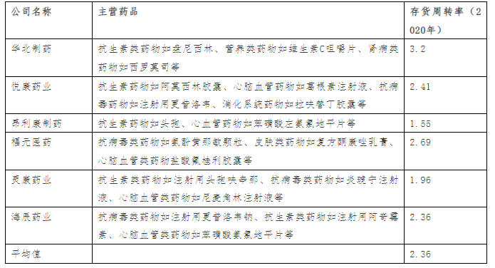 醫(yī)藥制造行業(yè)的存貨普遍較大,經(jīng)對比研究上市公司2020年公開數(shù)據(jù),得出結論醫(yī)藥制造行業(yè)平均存貨周轉率在2-3之間(按產(chǎn)品細分領域不同可能存在一定差異)。
