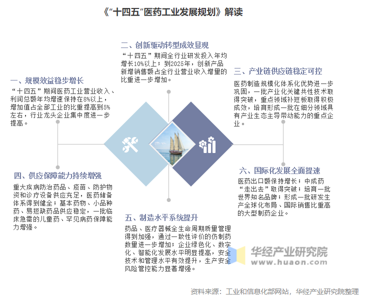 面對(duì)國(guó)內(nèi)外新形勢(shì)發(fā)展,為推動(dòng)我國(guó)醫(yī)藥工業(yè)向創(chuàng)新驅(qū)動(dòng)轉(zhuǎn)型,促進(jìn)我國(guó)醫(yī)藥工業(yè)高質(zhì)量發(fā)展,依據(jù)《中華人民共和國(guó)國(guó)民經(jīng)濟(jì)和社會(huì)發(fā)展第十四個(gè)五年規(guī)劃和2035年遠(yuǎn)景目標(biāo)綱要》,2022年1月30日,工業(yè)和信息化部等九部門(mén)聯(lián)合編制了《“十四五”醫(yī)藥工業(yè)發(fā)展規(guī)劃》。