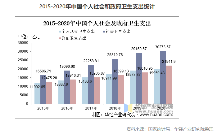 近年來(lái),我國(guó)醫(yī)療資源不斷豐富,醫(yī)療技術(shù)水平不斷提升,衛(wèi)生支出總體呈上升趨勢(shì),2020年全國(guó)衛(wèi)生總費(fèi)用預(yù)計(jì)達(dá)72306.4億元,占GDP百分比為7.12%,個(gè)人衛(wèi)生支出為2萬(wàn)億元左右。社會(huì)衛(wèi)生支出大概3萬(wàn)億元,政府衛(wèi)生支出2.2萬(wàn)億元。衛(wèi)生支出費(fèi)用持續(xù)增長(zhǎng),醫(yī)藥制造行業(yè)需求市場(chǎng)發(fā)展空間廣闊。