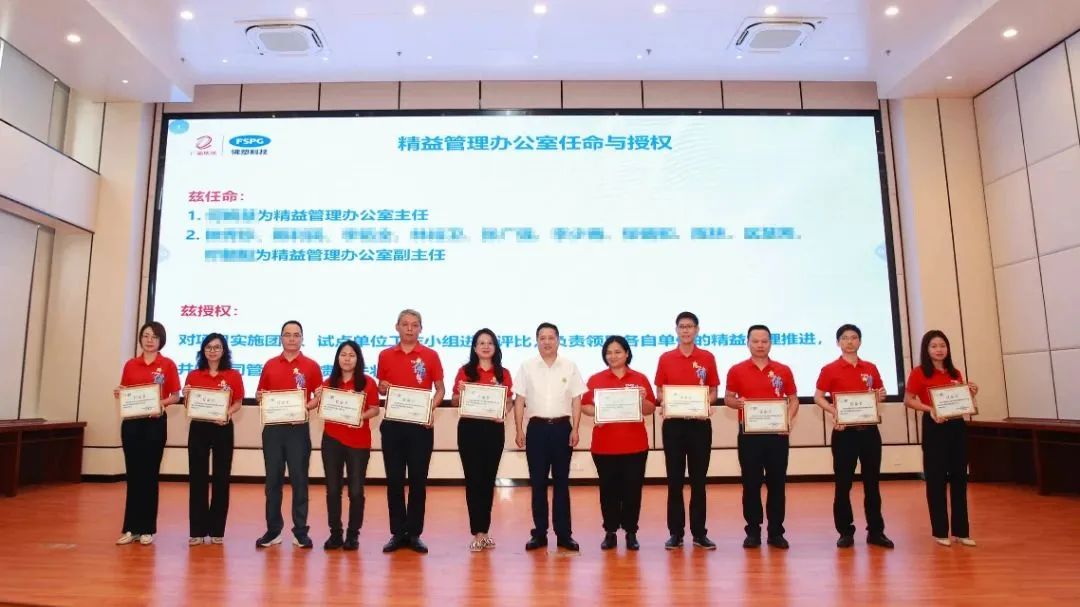 會議上,佛塑科技精益辦主任何婉慧發(fā)布精益二期項目組織架構(gòu)和項目管理機制。公司黨委副書記、工會主席葉志超為項目老師和項目相關(guān)負責人頒發(fā)了授權(quán)任命書,公司黨委副書記、總裁馬平三向各重點推進單位頒發(fā)項目目標責任狀。全員參與,全力推動精益管理變革。