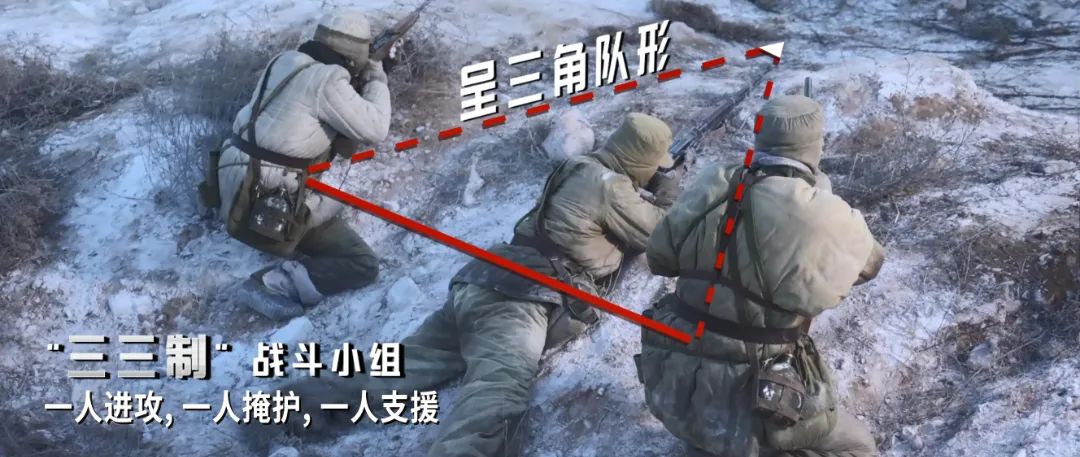 抗日戰(zhàn)爭時期,我軍由于裝備上的匱乏,不如日方裝備精良,作戰(zhàn)時,不得不常以密集隊(duì)形沖擊日軍的堅(jiān)固陣地。按照當(dāng)時的布置,三人為一個戰(zhàn)斗小組。在三人作戰(zhàn)小組中,這三個戰(zhàn)士分工十分明確,一個是進(jìn)攻,一個進(jìn)行掩護(hù),一個則在進(jìn)行支援,而三個戰(zhàn)斗小組就組成一個戰(zhàn)斗班,三個戰(zhàn)斗班則組成一個戰(zhàn)斗群這種沖鋒方式。這樣的隊(duì)形可以把落后的裝備,形成大的戰(zhàn)斗力,同時營造一種四面八方密集沖鋒的態(tài)勢,給敵軍造成巨大的心理壓力。