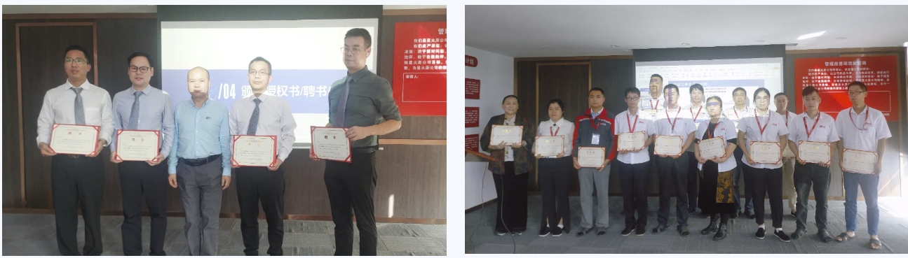 會(huì)上,郭總還為項(xiàng)目組頒發(fā)聘書和授權(quán)書,同時(shí)為項(xiàng)目改善小組頒發(fā)任命書,明確目標(biāo),落實(shí)責(zé)任。最后,參會(huì)全體人員進(jìn)行宣誓,堅(jiān)定變革決心,全力推動(dòng)改善,助力企業(yè)高質(zhì)量發(fā)展。