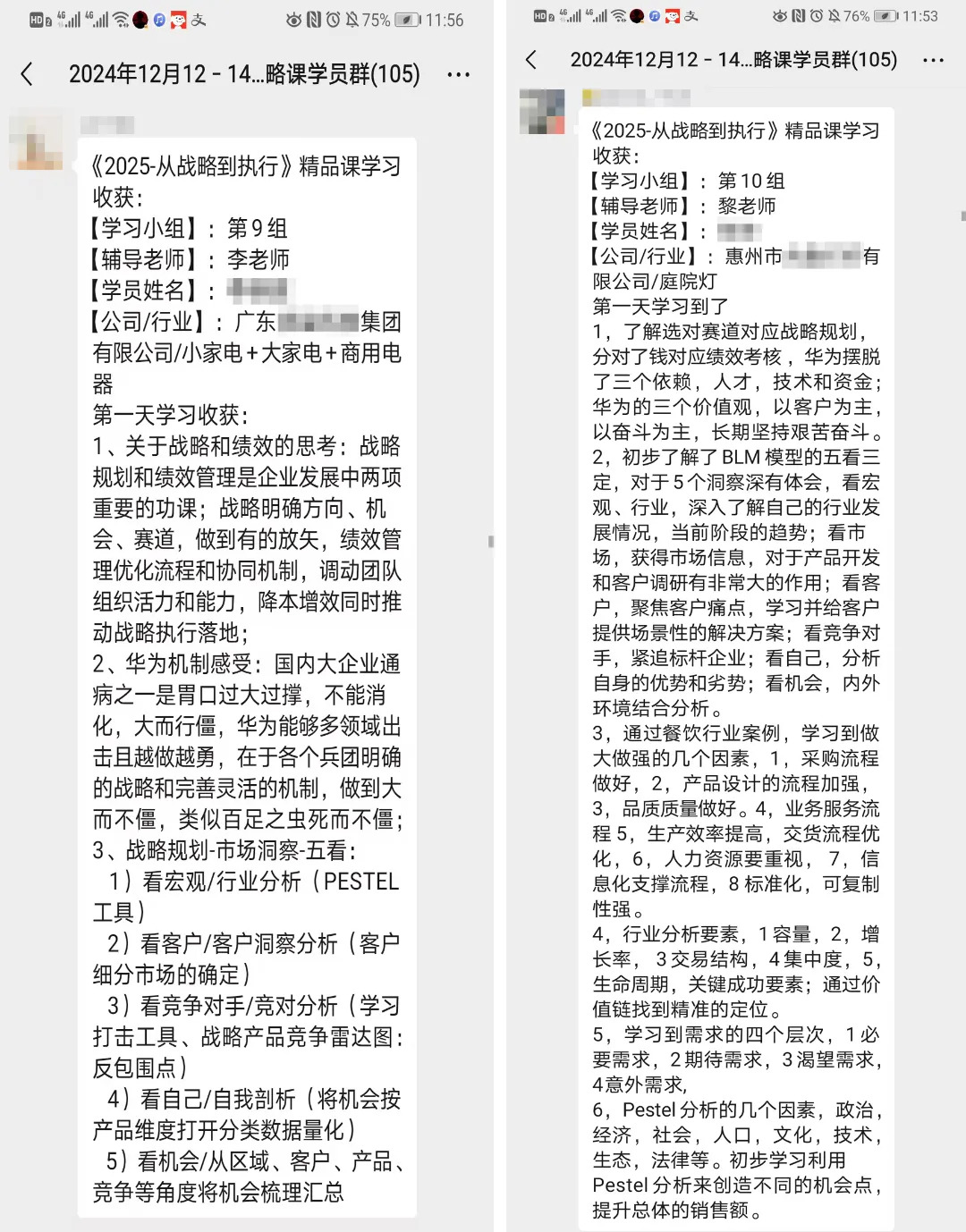 課堂上老師全程高能輸出,不僅讓學(xué)員掌握了豐富的理論知識,還有一套行之有效的工具方法;課上針對性的演練,老師現(xiàn)場輔導(dǎo)答疑解惑,讓學(xué)員把每一個知識點都落到實處;課上作業(yè)分享,課后總結(jié)收獲,鞏固知識要點,讓每一位學(xué)員回到企業(yè)都能夠制定一套適合企業(yè)的戰(zhàn)略方案,真正做到學(xué)來即用,落地即見效。