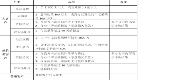 (4) 建立深圳市譽(yù)恒達(dá)科技有限公司客戶分類分級(jí)標(biāo)準(zhǔn),具體標(biāo)準(zhǔn)如下: