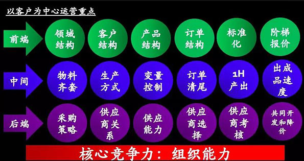 3、運營重點:企業(yè)的商業(yè)模式不一樣,對企業(yè)內(nèi)部運營的要求和重點也不一樣,例如某中小型企業(yè)是以客戶為中心的,該企業(yè)的運營重點總結(jié)如下圖所示(企業(yè)階段、規(guī)模、行業(yè)等存在差異,運營重點也會有差異):