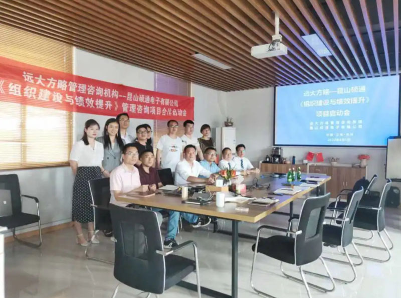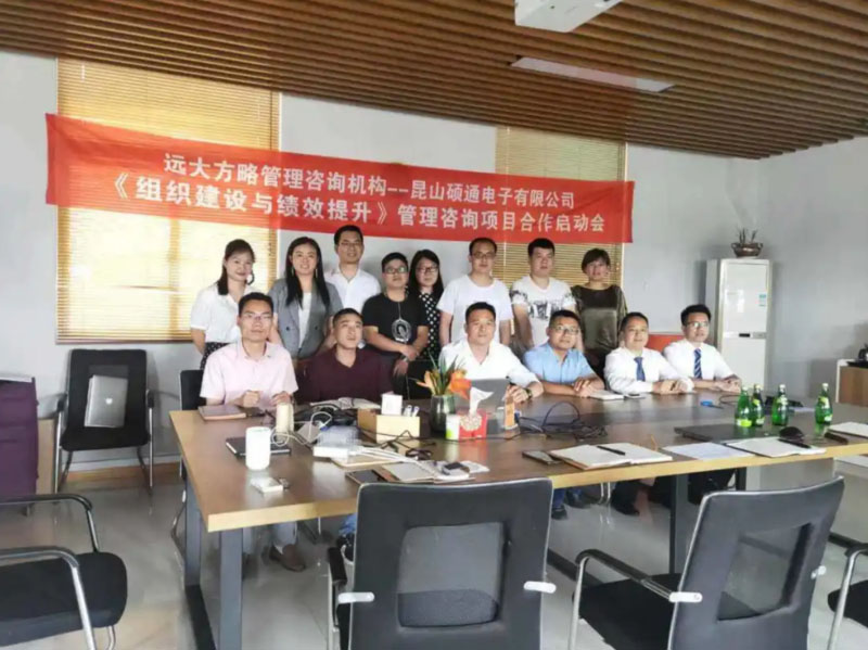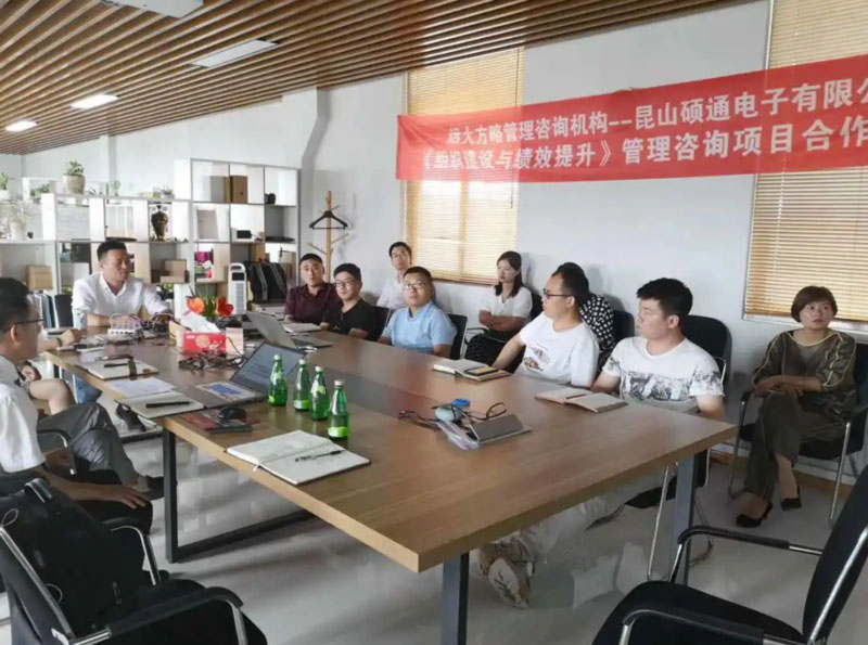 昆山碩通電子有限公司(以下簡稱“碩通電子”)攜手遠(yuǎn)大方略啟動(dòng)《組織建設(shè)與績效提升》管理改善項(xiàng)目。遠(yuǎn)大方略項(xiàng)目總監(jiān)劉老師、遠(yuǎn)大方略咨詢師呂老師入駐碩通電子,通過前期對(duì)碩通電子公司的深入調(diào)研與探討,本期項(xiàng)目主要圍繞企業(yè)現(xiàn)狀診斷、管理者角色轉(zhuǎn)型、組織結(jié)構(gòu)優(yōu)化、崗位職責(zé)優(yōu)化、薪酬體系優(yōu)化、績效體系優(yōu)化、年終獎(jiǎng)方案等展開改善。