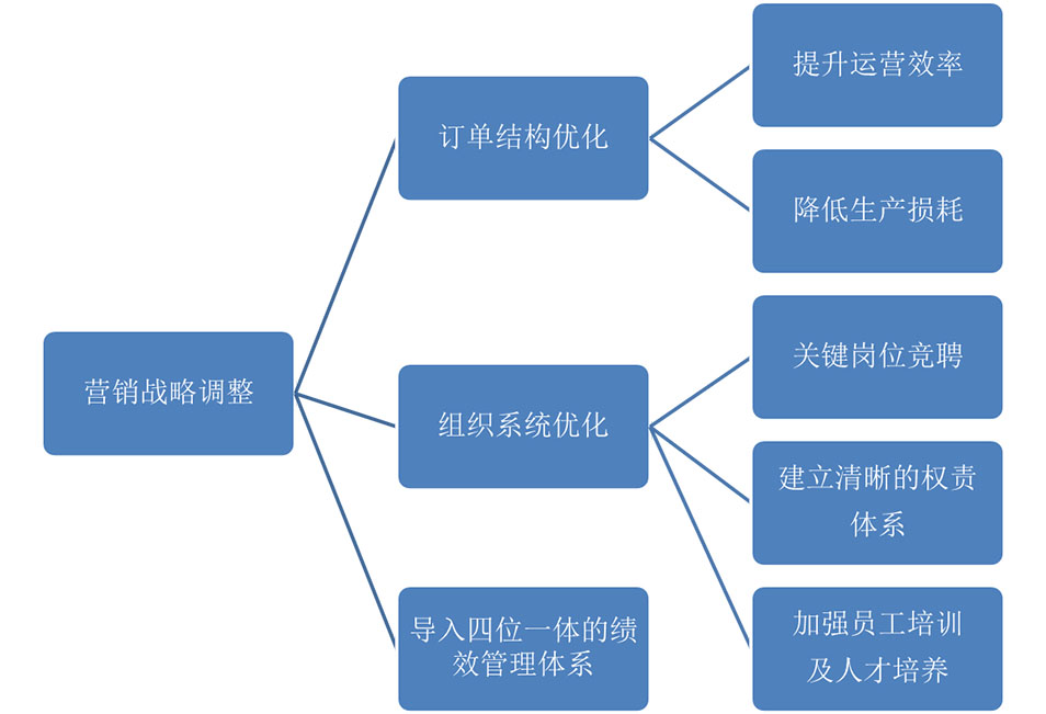 3、對(duì)營(yíng)銷戰(zhàn)略進(jìn)行梳理,并配套以訂單結(jié)構(gòu)優(yōu)化、組織系統(tǒng)優(yōu)化、績(jī)效體系導(dǎo)入,最終實(shí)現(xiàn)戰(zhàn)略營(yíng)銷破局。