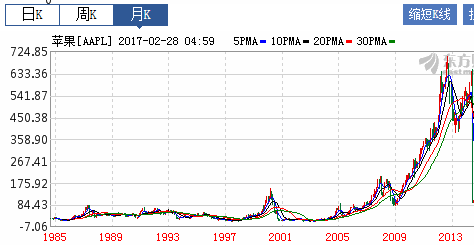 從上圖可以清晰的看出,蘋果的股價(jià)從2009年開始一路高歌,節(jié)節(jié)攀升。連很少觸碰高科技股和網(wǎng)絡(luò)股的股神巴菲特都在2016年開始大筆買進(jìn)蘋果公司股票。巴菲特旗下的伯克希爾·哈撒韋公司16年5月披露的信息中出現(xiàn)了蘋果股票的身影,但當(dāng)時(shí)只持有981萬(wàn)股的蘋果股票,然而從16年三季度開始,伯克希爾就開始大舉買入蘋果公司股票,在2016年年底已持有6120萬(wàn)股的蘋果股票。而在17年2月27日的一次訪談中,巴菲特透露在蘋果2017財(cái)年一季度財(cái)報(bào)發(fā)布之前,伯克希爾所持有的蘋果股票翻了一番,目前已持有1.33億股的蘋果股票,已成為蘋果公司第二大股東。此時(shí)喬布斯已經(jīng)離開多年。我們不得不承認(rèn)喬布斯對(duì)蘋果公司及整個(gè)科技界的貢獻(xiàn),是劃時(shí)代的創(chuàng)新!但我們把視線投向另外一個(gè)人:庫(kù)克!