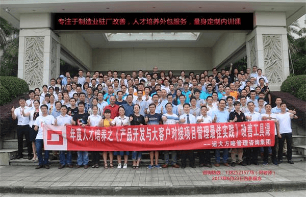 6月23-24日,由遠(yuǎn)大方略主辦的“產(chǎn)品開(kāi)發(fā)與大客戶項(xiàng)目對(duì)接管理”改善工具課在惠州濤景高爾夫酒店順利召開(kāi)。此次課程由遠(yuǎn)大方略合伙人張現(xiàn)鋒老師、遠(yuǎn)大方略咨詢師雷志軍老師聯(lián)袂主講,羅慶龍老師主持。來(lái)自各地的共近200位企業(yè)管理人才參與了此次課程。