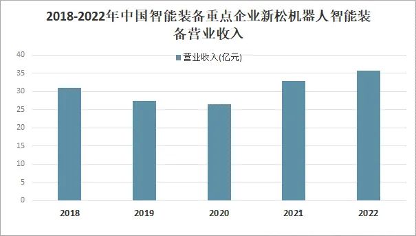 新松機(jī)器人股份有限公司是智能裝備企業(yè)龍頭企業(yè)之一,其智能裝備業(yè)務(wù)主要圍繞公司機(jī)器人核心產(chǎn)品領(lǐng)域所形成的自動(dòng)化產(chǎn)線應(yīng)用,主要包括焊接自動(dòng)化、裝配自動(dòng)化和物流自動(dòng)化。2021年由于“十四五”政策,國家大力支持發(fā)展智能裝備制造,2022年新松機(jī)器人智能裝備業(yè)務(wù)營業(yè)收入繼續(xù)增加,營業(yè)收入為35.72億元,較2021年同比增長8.42%。