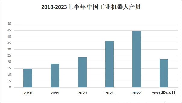 隨著我國傳統(tǒng)工業(yè)特別是制造業(yè)的迅速發(fā)展,國內(nèi)對(duì)于生產(chǎn)勞動(dòng)力的需求量逐步提升。傳統(tǒng)工業(yè)尤其是制造業(yè)對(duì)工業(yè)機(jī)器人這類勞動(dòng)力替代產(chǎn)品的需求將始終保持增長態(tài)勢。工業(yè)機(jī)器人按照輸入信號(hào)方式可分為編程輸入型機(jī)器人和示教輸入型機(jī)器人。從國家統(tǒng)計(jì)局發(fā)布的數(shù)據(jù)來看,我國工業(yè)機(jī)器人產(chǎn)量整體呈現(xiàn)穩(wěn)定增長的趨勢,且增速逐年增加,2022年我國工業(yè)機(jī)器人產(chǎn)量為44.31萬套,比2021年增加了7.71萬套,同比增加21.07%,截至2023年6月底,我國工業(yè)機(jī)器人產(chǎn)量為22.21萬套,同比增長5.4%,預(yù)計(jì)2023年底,我國工業(yè)機(jī)器人產(chǎn)量將突破45萬套。