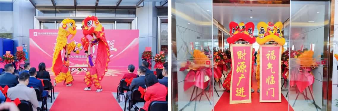 隨后,在現(xiàn)場全員的祝福和見證下,雷總、何總攜遠大方略核心高管共同為新址揭幕,新址紅幕緩緩揭開的那一刻,禮花齊放,掌聲四起,昭示著遠大方略翻開了新的一頁,也激勵著全體員工凝心聚力,追光前行。金剪齊開,見證發(fā)展;禮花四射,共創(chuàng)輝煌,雷總、何總以及高級合伙人、嘉賓代表一起完成了隆重的剪彩儀式,每個人都交流著祝福和期待,這不僅僅是對遠大方略過去成績的肯定,更是對未來的激勵和展望。緊接著瑞獅到遠大方略公司各個區(qū)域進行旺場,把吉祥和好運散播到每一個角落。
