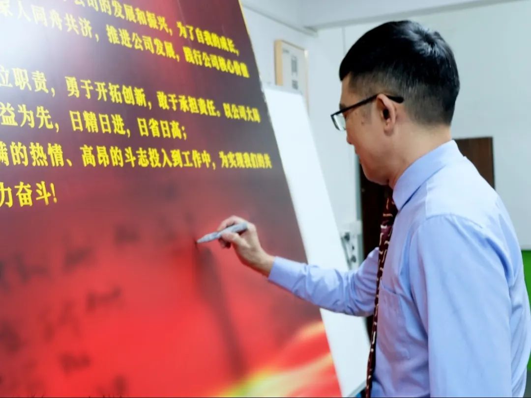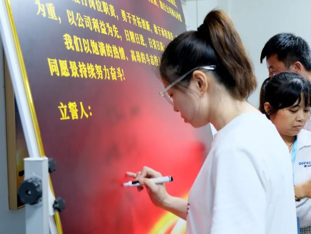 會(huì)上,萬(wàn)總為項(xiàng)目老師頒發(fā)了授權(quán)書和聘書,帶領(lǐng)項(xiàng)目關(guān)鍵人員在誓詞上簽字并集體宣誓,鼓勵(lì)大家和公司共同成長(zhǎng)進(jìn)步。
