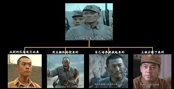 案例:李云龍如何構(gòu)建核心團(tuán)隊(duì)(魏和尚:解救后吸引而來(lái);孫連長(zhǎng):用五挺重機(jī)槍從別的隊(duì)伍挖過(guò)來(lái);張營(yíng)長(zhǎng):自己培養(yǎng)提拔起來(lái),是打出來(lái)的;趙政委:上級(jí)委派而來(lái)。